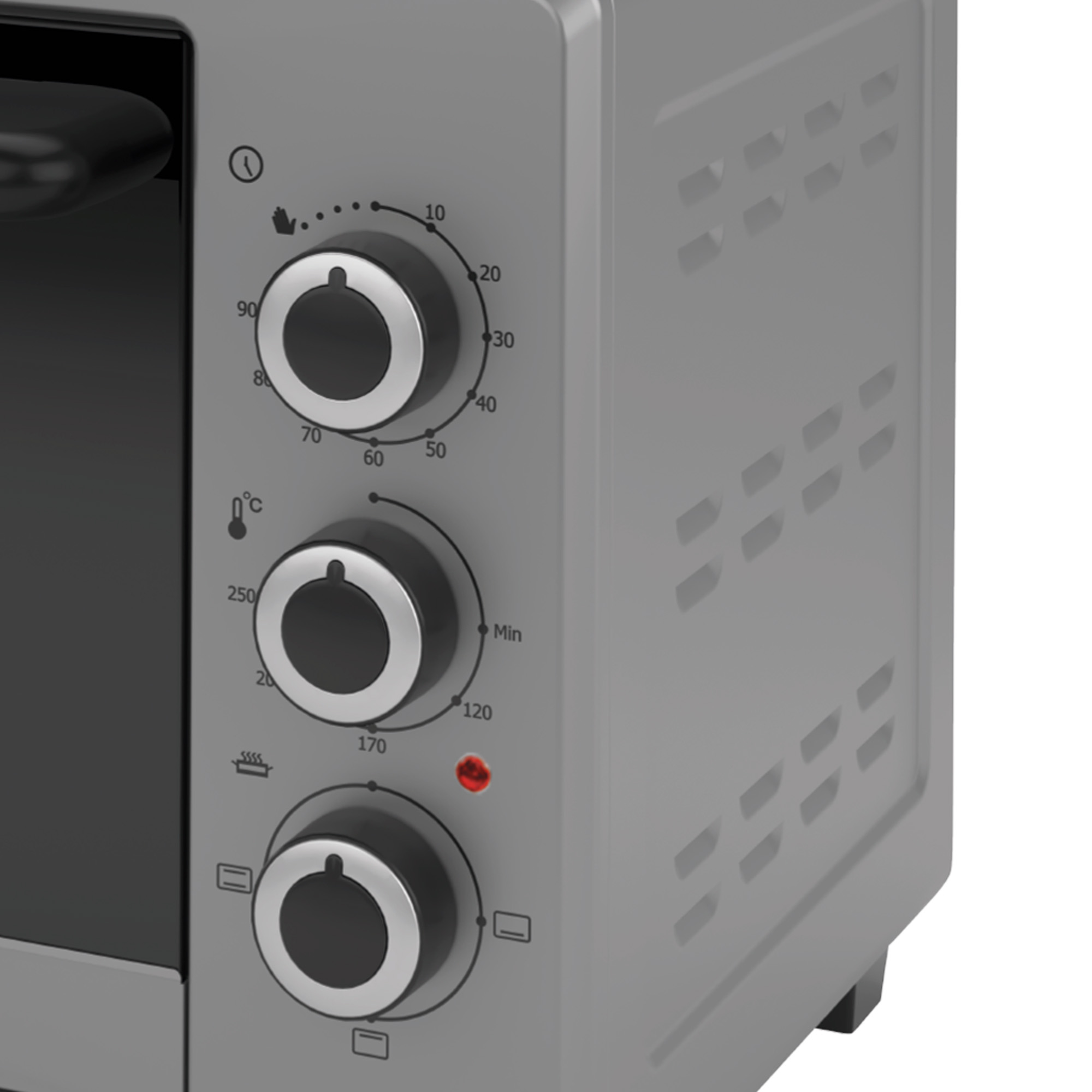 Все элементы мини-печи выполнены с вниманием к деталям. Механическая панель управления легко настраивается и позволяет сфокусировать своё внимание на готовке, а не на настройке мини-печи. Уход за мини-печью занимает минимум усилий: съёмные противни и стеклянная дверца легко моются. В комплекте есть всё необходимое для начала приготовления пищи без покупки дополнительной посуды.