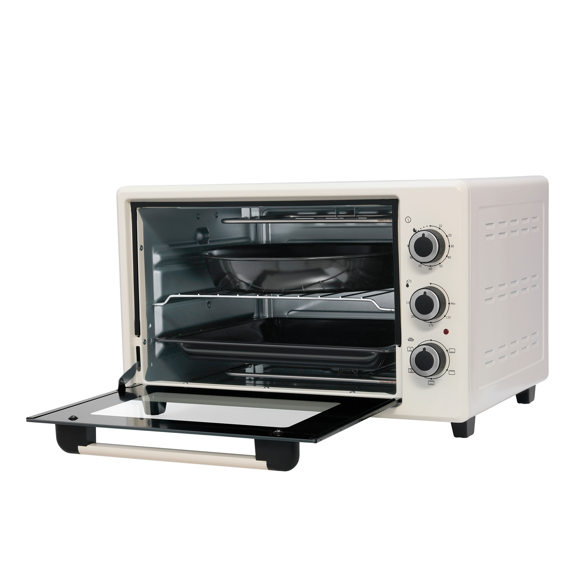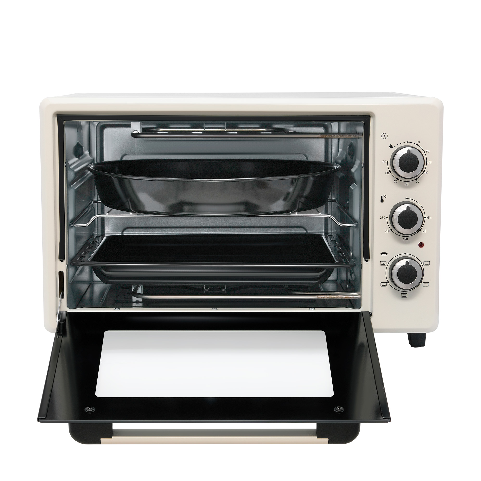 Все элементы у мини-печи выполнены с вниманием к деталям. Механическая панель управления легко настраивается и позволяет сфокусировать своё внимание на готовке, а не на настройке мини-печи. Уход за мини-печью занимает минимум усилий: съёмные противни и стеклянная дверца легко моются. В комплекте есть всё необходимое для начала приготовления пищи без покупки дополнительной посуды.