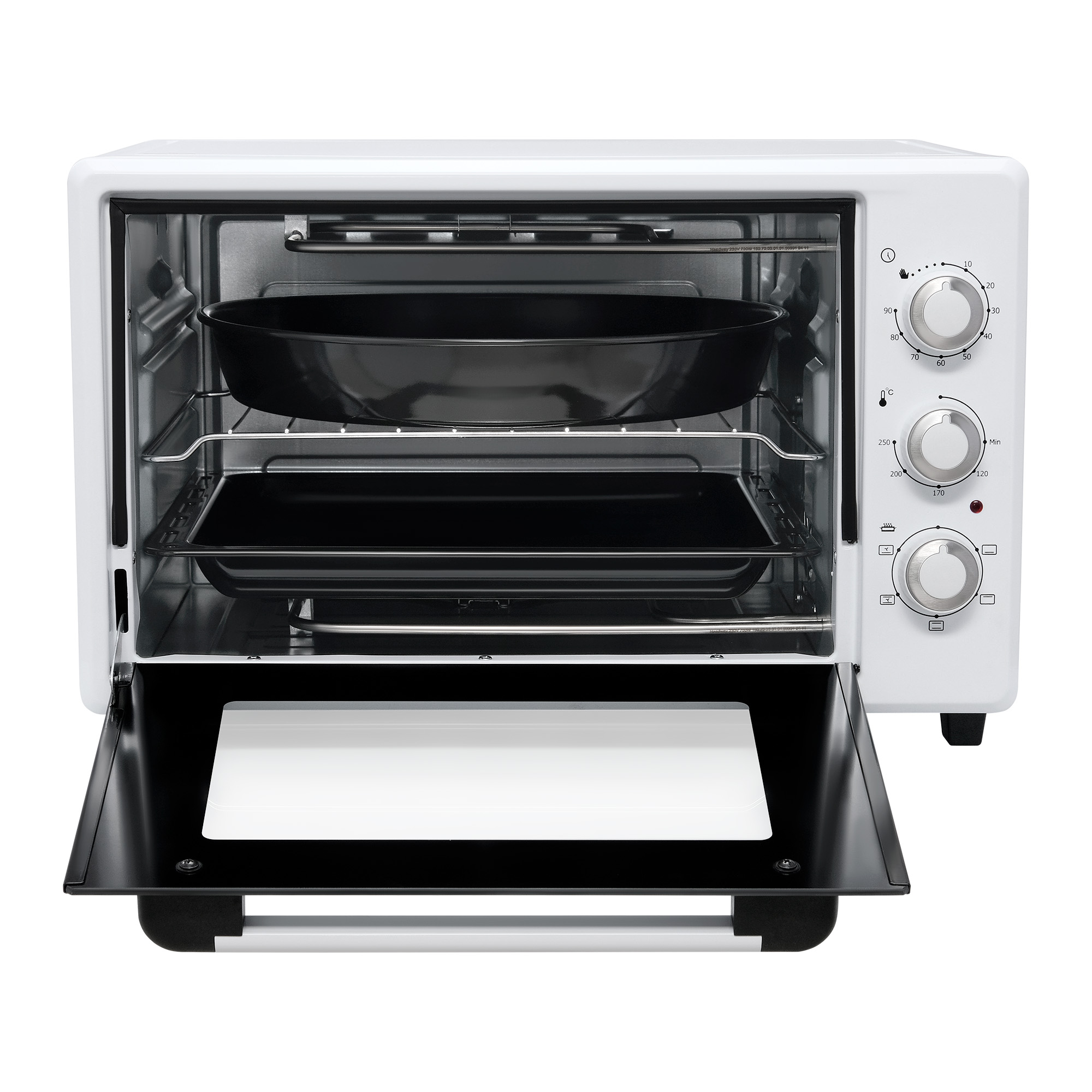 Все элементы у мини-печи выполнены с вниманием к деталям. Механическая панель управления легко настраивается и позволяет сфокусировать своё внимание на готовке, а не на настройке мини-печи. Уход за мини-печью занимает минимум усилий: съёмные противни и стеклянная дверца легко моются. В комплекте есть всё необходимое для начала приготовления пищи без покупки дополнительной посуды.