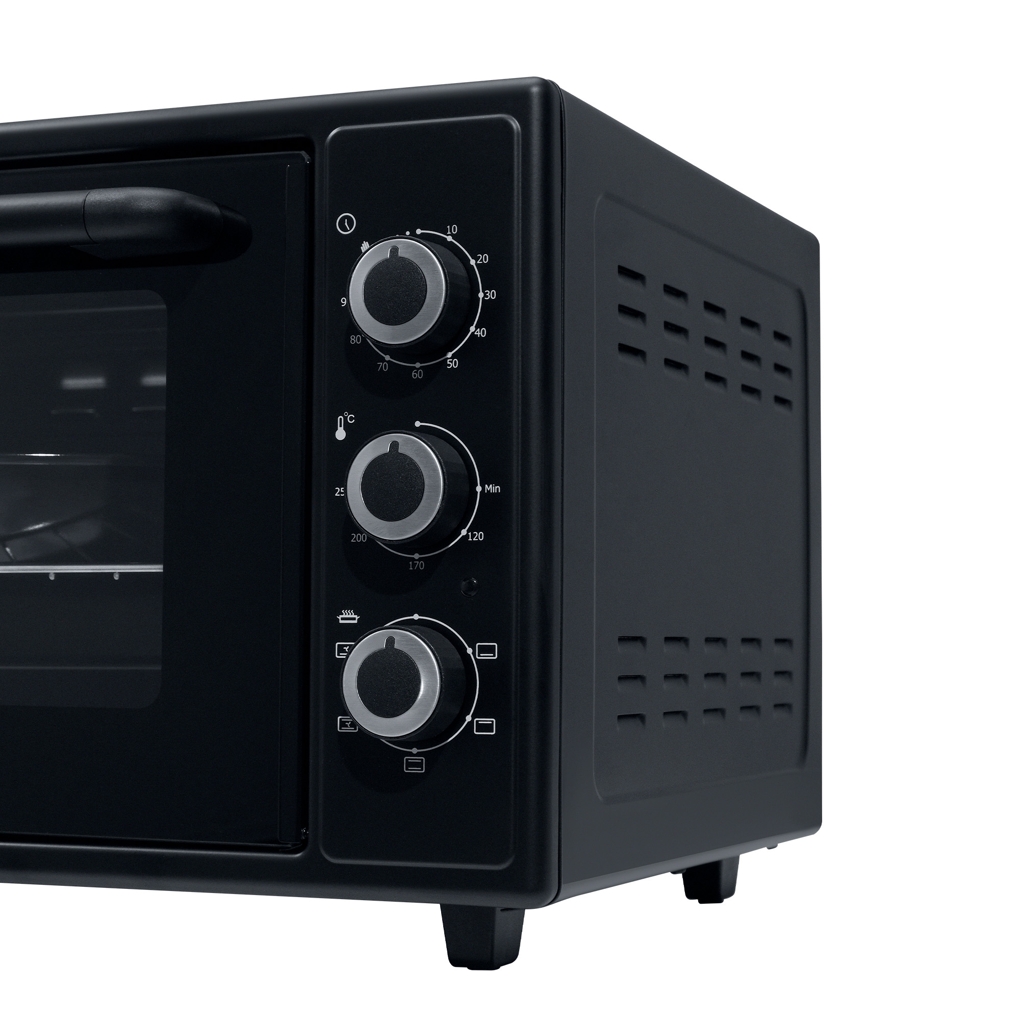 Все элементы у мини-печи выполнены с вниманием к деталям. Механическая панель управления легко настраивается и позволяет сфокусировать своё внимание на готовке, а не на настройке мини-печи. Уход за мини-печью занимает минимум усилий: съёмные противни и стеклянная дверца легко моются. В комплекте есть всё необходимое для начала приготовления пищи без покупки дополнительной посуды.