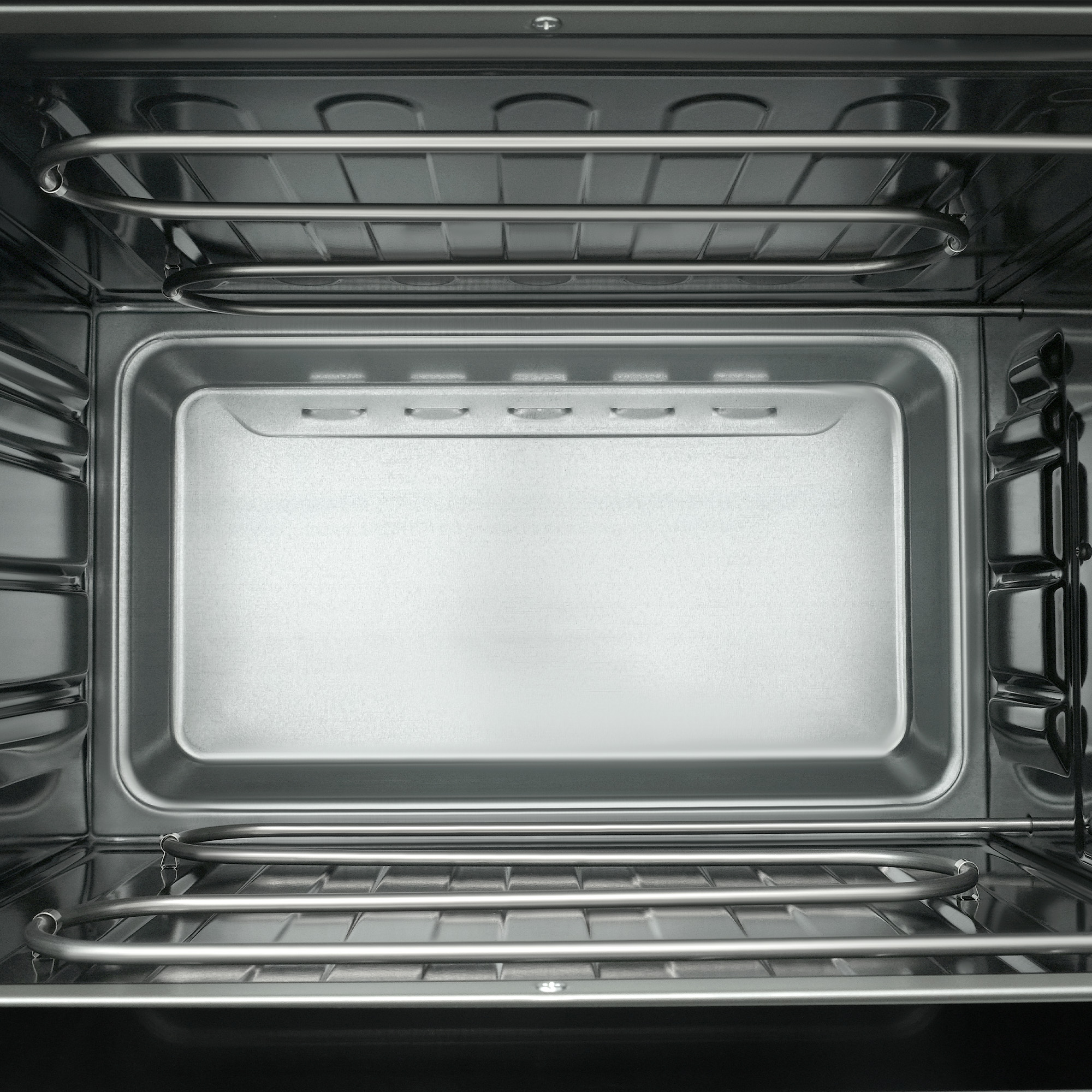 Все элементы у мини-печи выполнены с вниманием к деталям. Механическая панель управления легко настраивается и позволяет сфокусировать своё внимание на готовке, а не на настройке мини-печи. Уход за мини-печью занимает минимум усилий: съёмные противни и стеклянная дверца легко моются. В комплекте есть всё необходимое для начала приготовления пищи без покупки дополнительной посуды.