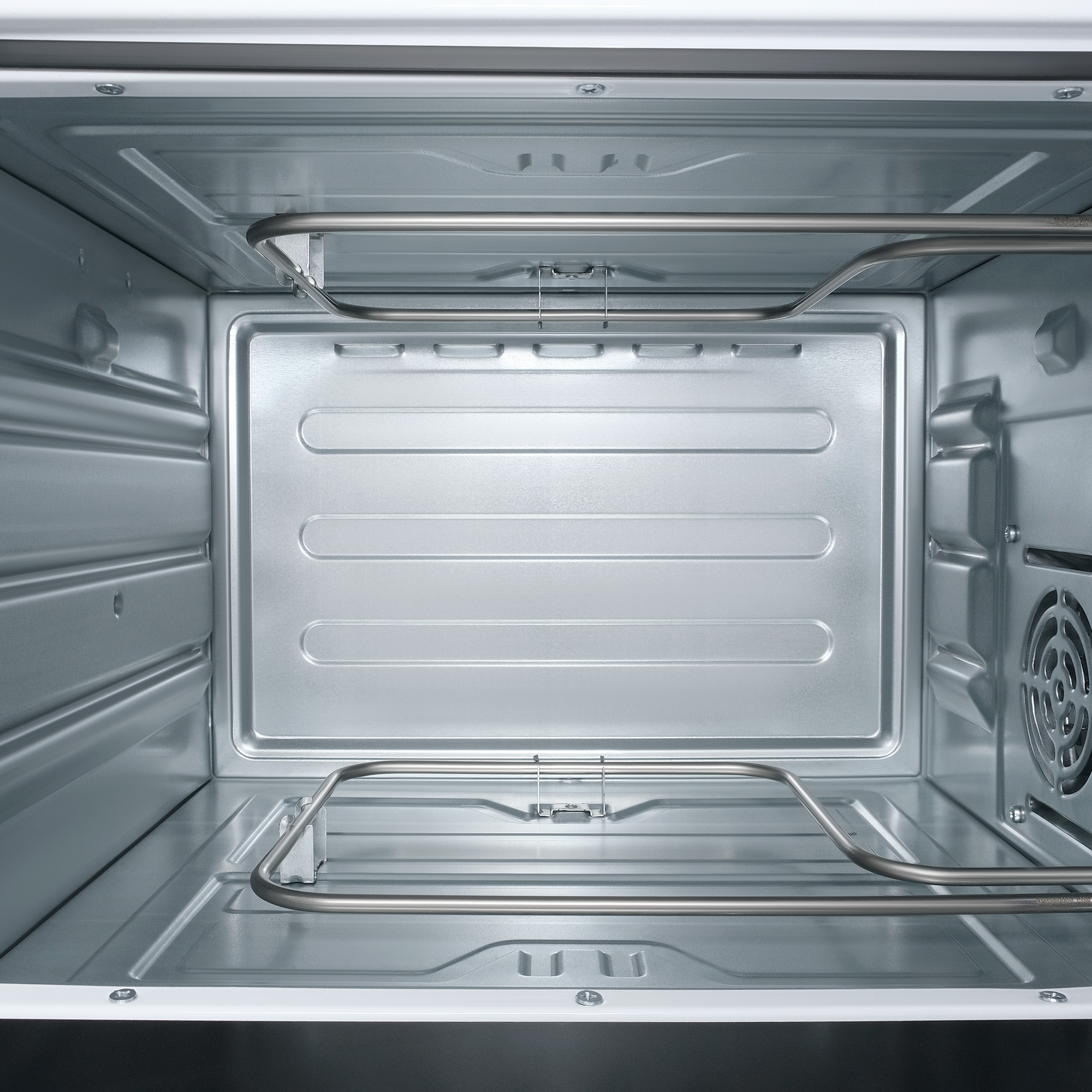 Все элементы у мини-печи выполнены с вниманием к деталям. Механическая панель управления легко настраивается и позволяет сфокусировать своё внимание на готовке, а не на настройке мини-печи. Уход за мини-печью занимает минимум усилий: съёмные противни и стеклянная дверца легко моются. В комплекте есть всё необходимое для начала приготовления пищи без покупки дополнительной посуды.