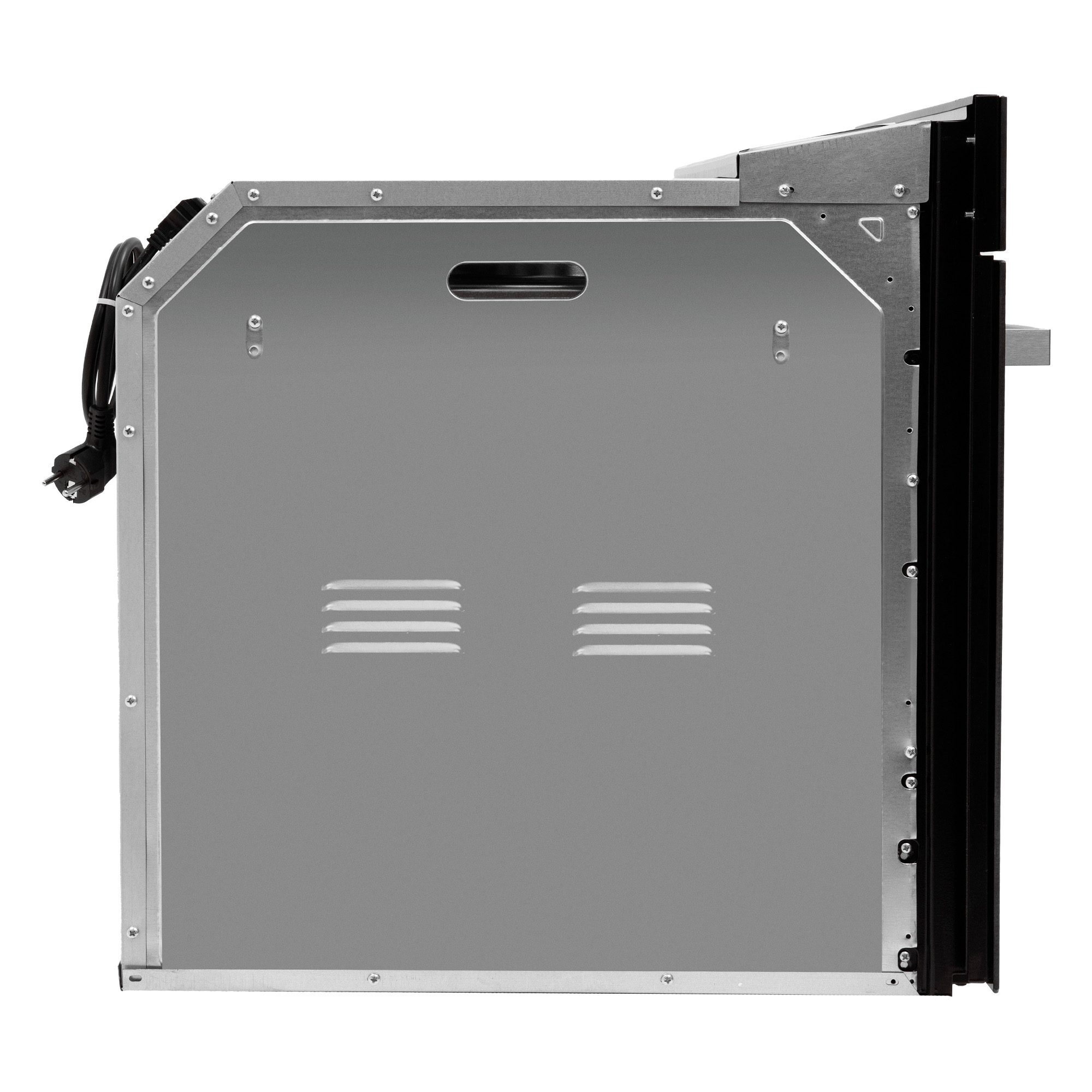 Двойное жаропрочное стекло эффективно снижает температуру внешней поверхности, предотвращая ожоги. Покрытие Low-E повышает энергоэффективность, удерживая тепло внутри. Съёмное внутреннее стекло упрощает чистку прибора. Стальные направляющие обеспечивают плавное и безопасное выдвижение даже тяжёлых противней. Тангенциальное охлаждение создаёт вокруг духовки воздушный барьер, который препятствует утечке тепла, защищая от перегрева как саму духовку, так и кухонную мебель.