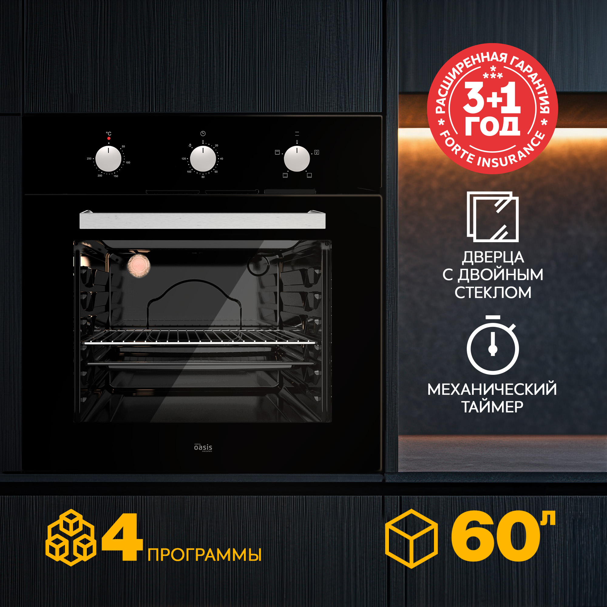 Электрический встраиваемый духовой шкаф making Oasis everywhere – это выбор для тех, кто ищет надёжность и простоту в использовании. Панель управления из стекла придаёт устройству современный вид. Механическое управление обеспечивает понятную настройку.