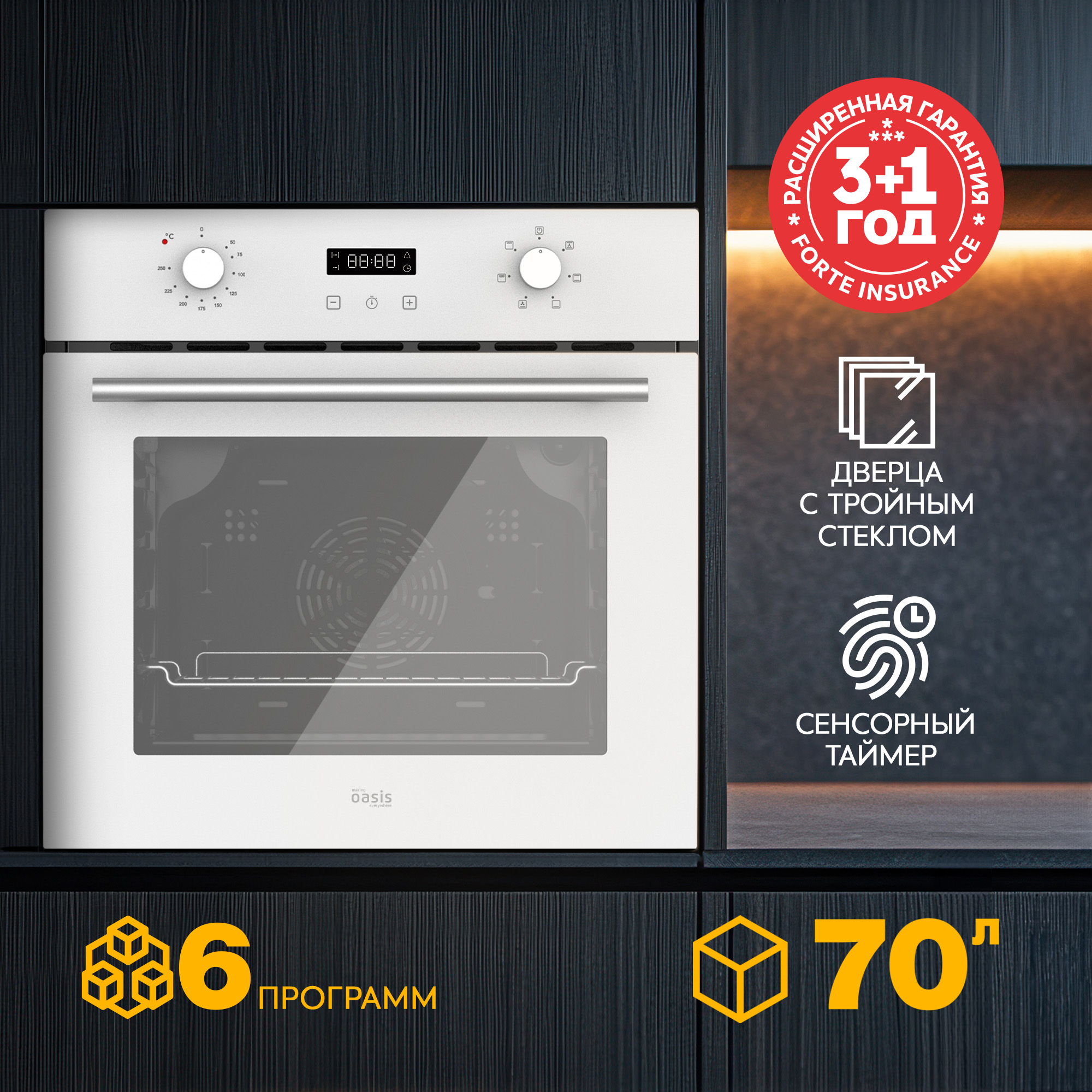 Электрический встраиваемый духовой шкаф making Oasis everywhere – это выбор для тех, кто ищет надёжность и простоту в использовании. Панель управления из стекла придаёт устройству современный вид. Механическое управление обеспечивает понятную настройку.