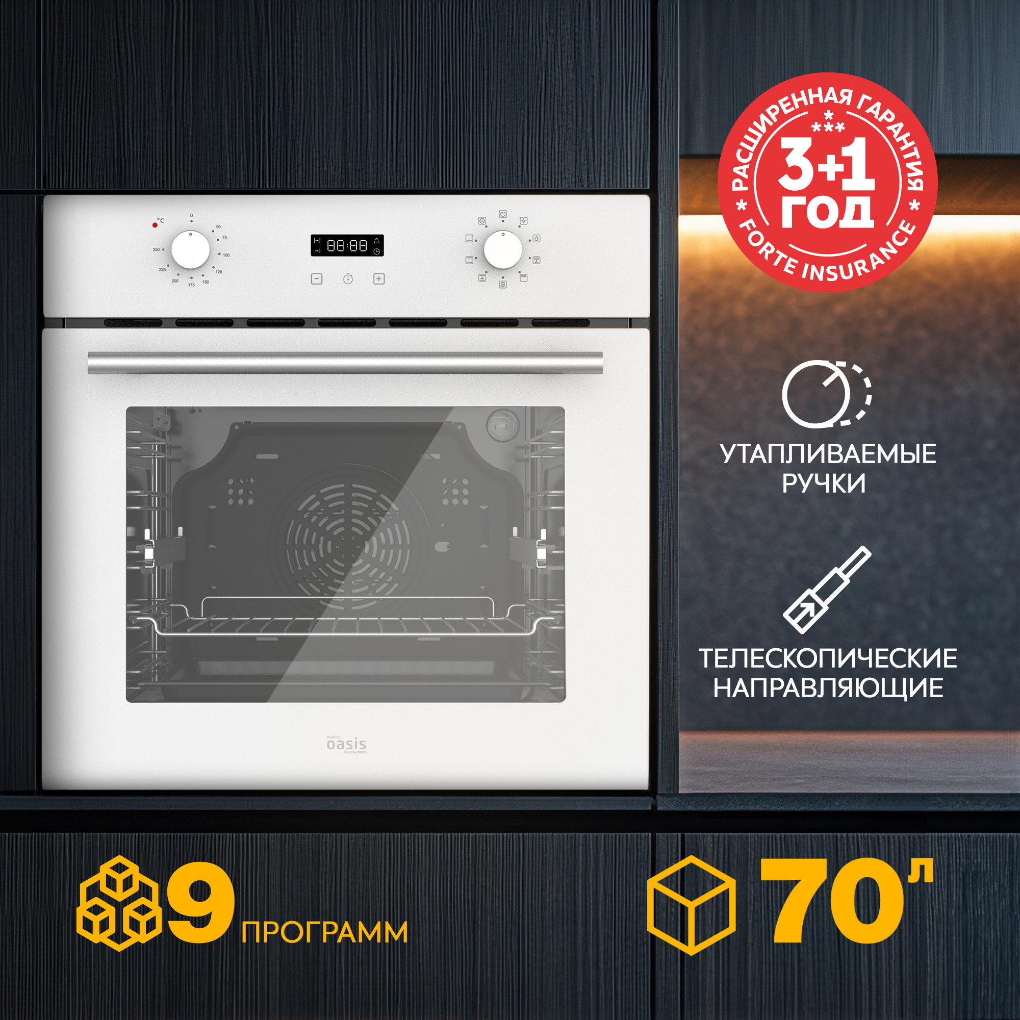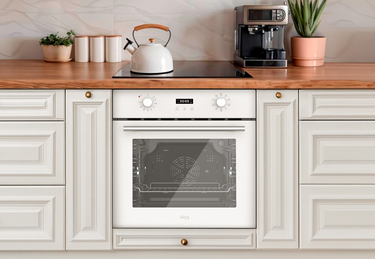 Электрический встраиваемый духовой шкаф making Oasis everywhere – это выбор для тех, кто не ищет компромиссов. Стильный белый цвет и панель управления из стекла придают устройству современный вид. Утапливаемые ручки также добавляют эстетики, сливаясь с поверхностью. Механическое управление обеспечивает понятную настройку.