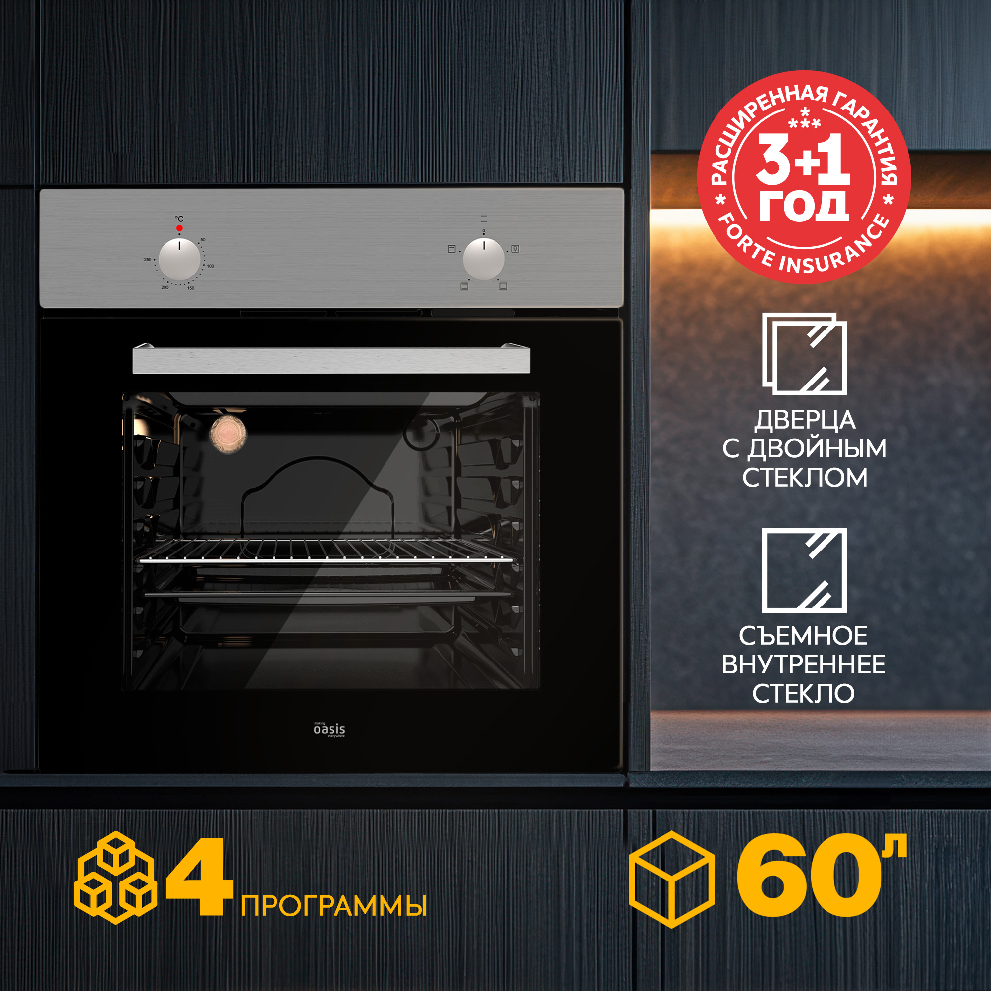 Электрический встраиваемый духовой шкаф making Oasis everywhere – это выбор для тех, кто ищет надёжность и простоту в использовании. Панель управления из стекла придаёт устройству современный вид. Механическое управление обеспечивает понятную настройку.