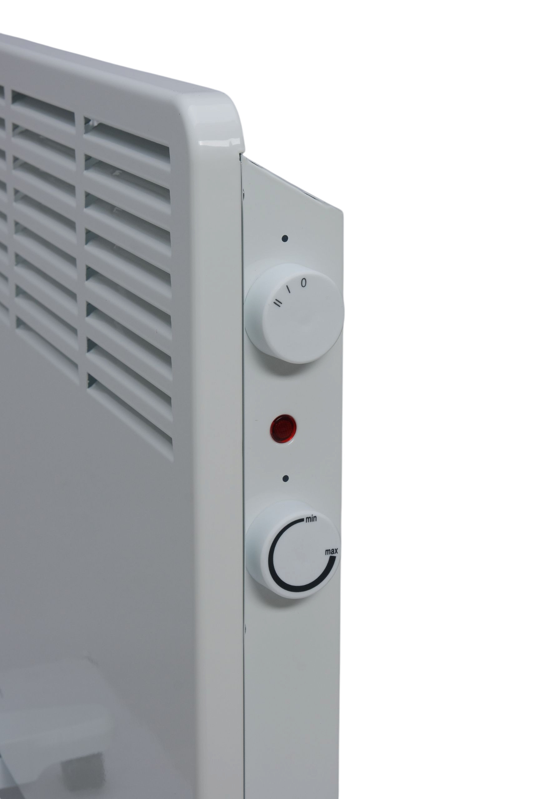 В зависимости от потребностей конвектор можно использовать как напольный или как настенный обогреватель. Регулируемый термостат автоматически поддерживает заданную температуру.