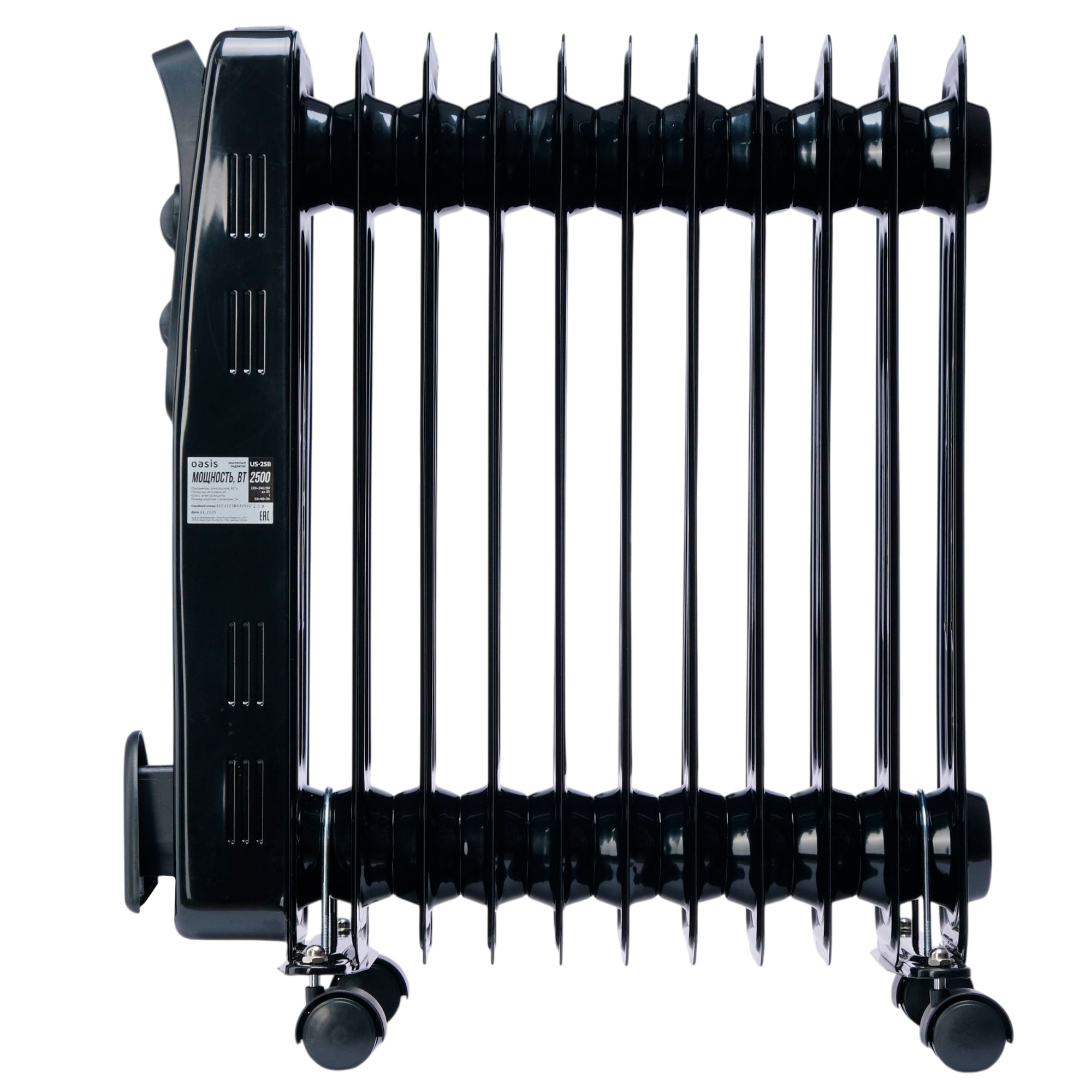 Масляный радиатор отопления Oasis - электрический отопительный прибор, предназначенный для обогрева помещений. Внутри устройства находится минеральное масло, которое нагревается, а затем передаёт тепло через корпус радиатора. Это обеспечивает мягкий и равномерный прогрев воздуха в комнате. Масляные радиаторы подходят для использования дома, в квартире или офисе.