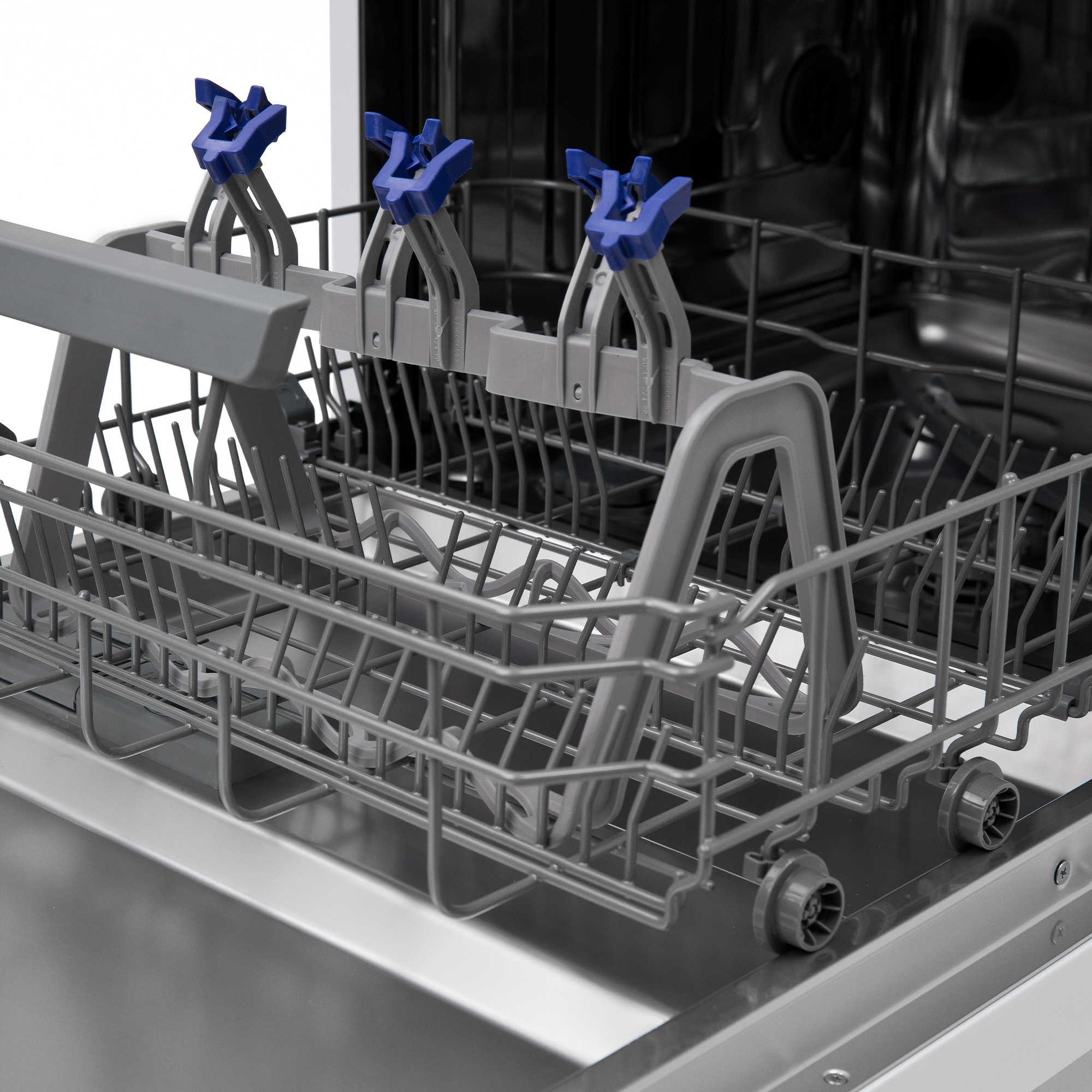 Посудомоечная машина вмещает до 14 комплектов посуды и имеет 6 программ для разных типов посуды. Складной держатель посуды обеспечивает гибкость при загрузке крупных предметов за счёт возможности сложить или убрать часть корзин. Подставка для бокалов надёжно фиксирует хрупкие бокалы за ножки, предотвращая их повреждение. Функция отложенного запуска (до 12 часов) позволяет настроить работу устройства в соответствии с Вашим распорядком дня. Высокая энергоэффективность класса А++ и низкое потребление воды снижают затраты, связанные с эксплуатацией.