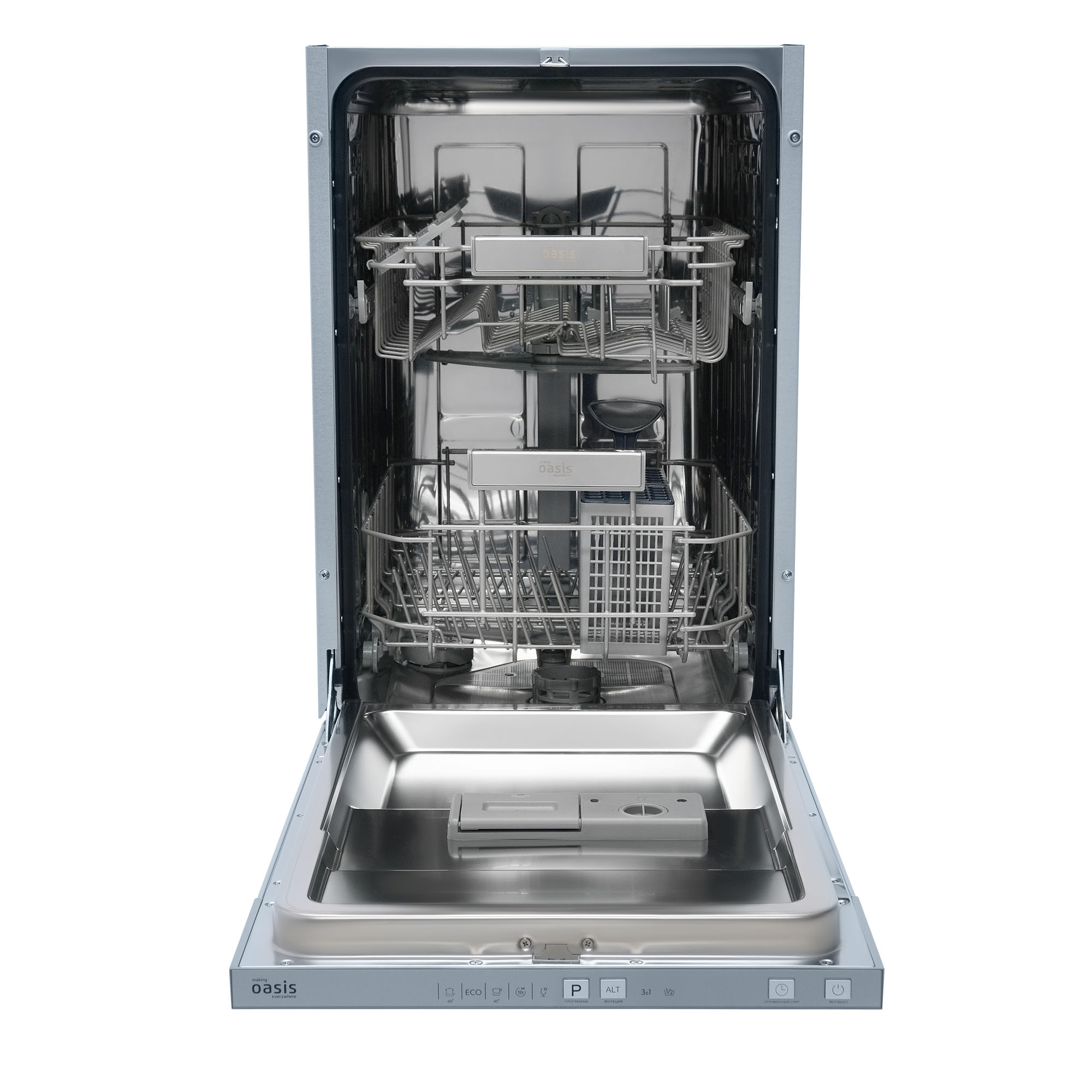 Посудомоечная машина making Oasis everywhere PM-9V5S – это настоящая находка для домохозяек. Она берёт на себя всю рутину по мытью посуды после семейных обедов и ужинов, освобождая время для более приятных забот. Устройство полностью встраивается в гарнитур, оставаясь практически незаметным и не нарушая кухонный интерьер.