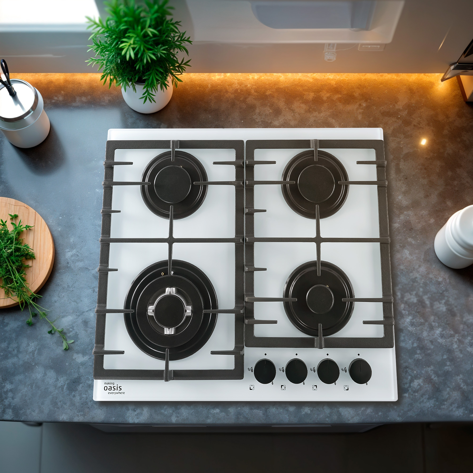 Газовая встраиваемая варочная панель making Oasis everywhere - незаменимый кухонный прибор и главный помощник в приготовлении Ваших любимых блюд. Поверхность из закалённого стекла отлично вписывается в кухонный дизайн, а также легко очищается от загрязнений.