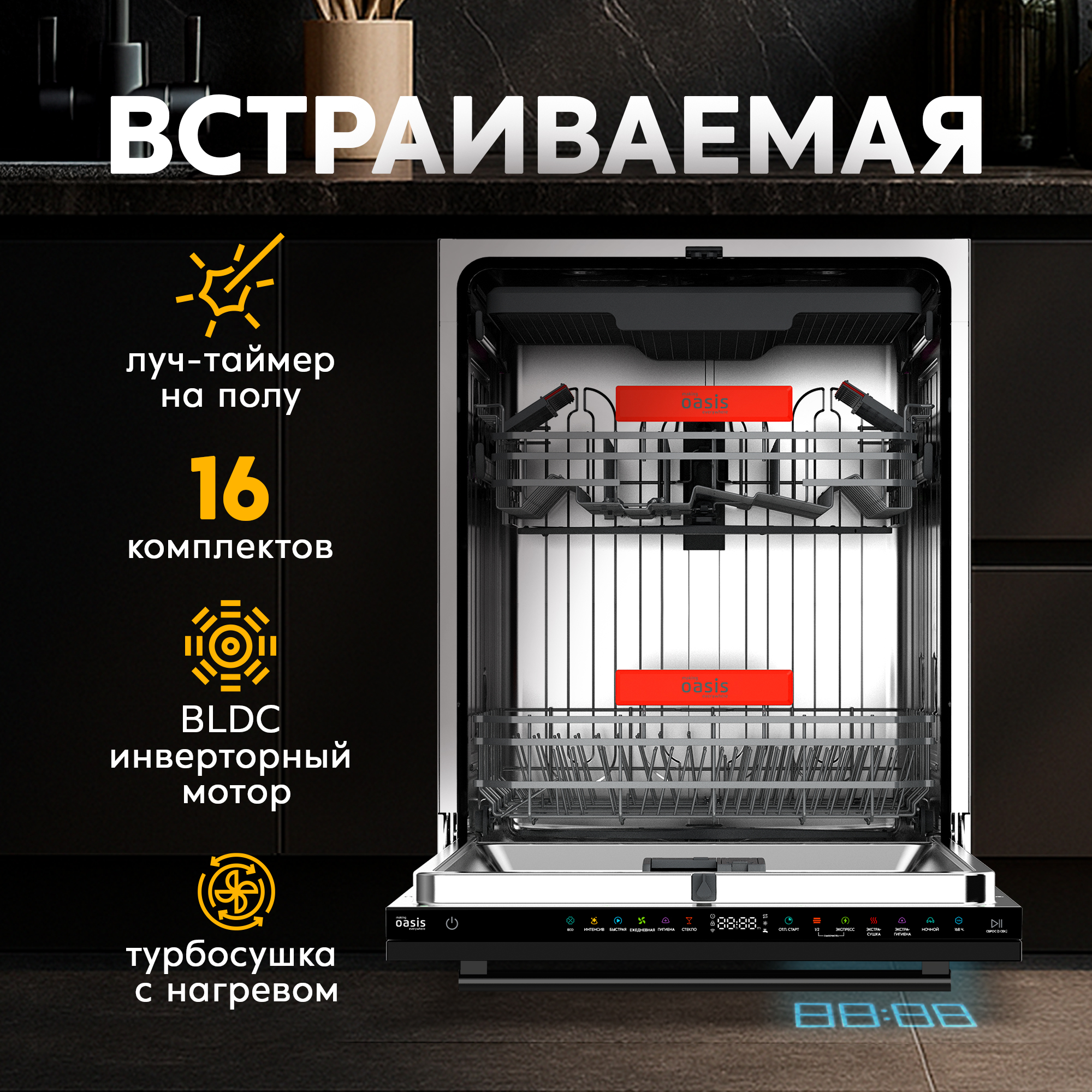 Посудомоечная машина making Oasis everywhere BDW-6039I D – это настоящая находка для домохозяек. Она берёт на себя всю рутину по мытью посуды после семейных обедов и ужинов. Компактная, но вместительная, посудомоечная машина легко справляется с повседневными задачами, освобождая время для более приятных забот. Устройство полностью встраивается в гарнитур, оставаясь практически незаметным и не нарушая кухонный интерьер. Инверторная технология позволяет устройству плавно регулировать мощность компрессора, снижая уровень шума и предотвращая резкие скачки электроэнергии.